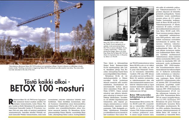 Nostureista ja nostokoneista kiinnostuneiden harrastajien yhdistys, Nosturihistoriallinen Seura, on julkaissut toisen kirjansa. Betox suomalainen torninosturi kertoo monelle rakentajalle tutusta kotimaisesta nosturista.