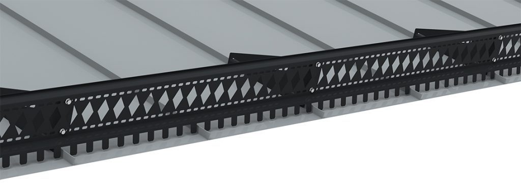 Aurinkopaneelien pinta-alaa pyritään usein maksimoimaan, jolloin räystään ja paneelien väliin jää liian vähän tilaa tavanomaisen korkuiselle lumiesteelle. Aurinkopaneelit nostavat lumikuormaa katteen pinnasta korkeammalle, jolloin putoavan lumen eteen tarvitaan riittävän korkea lumieste. Pisko SnowDefence 300 Solar on ratkaisu tähän tarpeeseen ja tarjoaa suorituskykyisen ja turvallisen ratkaisun pystysaumakatoille. Lumiaita on riittävän korkea ja aidassa on lisäksi integroitu jääeste profiilin alareunassa, joka estää jään vaarallista valumista lumiestelinjan ali. Tuote on suunniteltu noudattamaan RT 103756 -ohjekortin suosituksia aurinkopaneelien ja lumiesteiden yhteensovittamisesta.