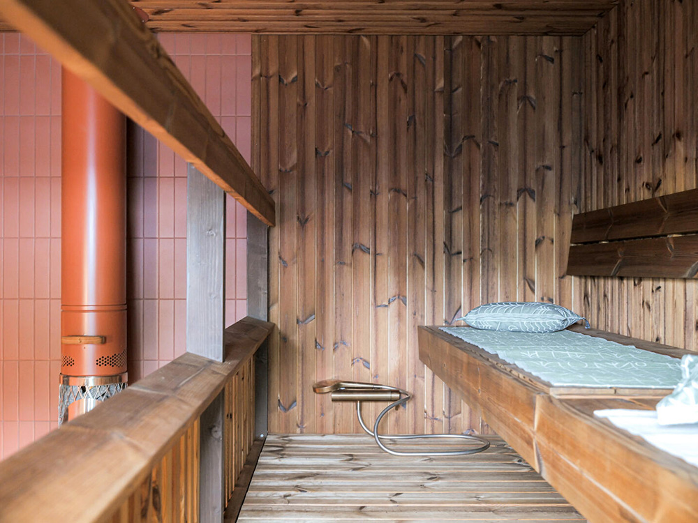 ”Meille oli tärkeää, että talo on omaleimainen, mutta ilman krumeluureja joka paikassa. Halusimme antaa arkkitehtiystävällemme­ Juho Lonkilalle vapaat kädet­ saunan suunnitteluun, ja koska­ neliöitä­ kahden ihmisen asumi­seen riitti, 10 neliön antaminen­ saunalle ei ollut kynnyskysymys. Lopputuloksena on loistavalöylyinen ja persoonallinen tila, joka poikkeaa­ kodin muusta tunnelmasta ja on ­omiaan aiheuttamaan ­ihmetystä kävijässä.”